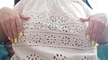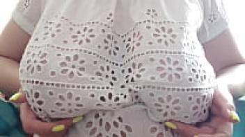 After school, my adorable stepsister plays with her enormous tits.