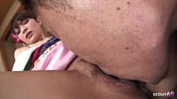 In this uncensored JAV porn, an elderly man gives a traditional skinny Japanese teen with large breasts a thorough creampie.