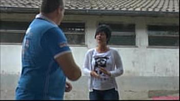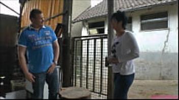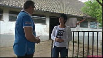 In the barn, a chubby man with a tiny dick is infatuated with a lovely milf.
