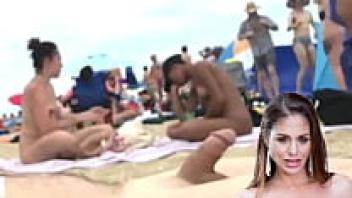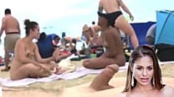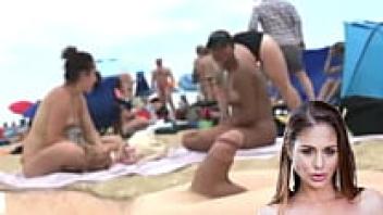 Hairy French cuckold wife gives lucky beachgoer a dangerous public blowjob