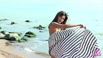 While sunbathing on the beach, nudist Arya becomes aroused and masturbates!