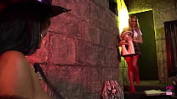 To join her group of pals, a blonde girl went up to Jasmine Black, who had enormous breasts.
