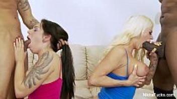 Teenagers from Brazil, ages 18 and 19, engage in amateur interracial group sex, licking each other's pussies and even having anal sex before consuming all of their sperm.