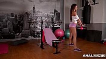 Marina Visconti, a curvaceous teenager, sways her boobs while riding a firm dick in the gym.