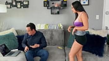 The client's body and dick are massaged by a petite Asian teen with an incredible ass.