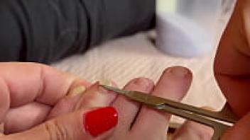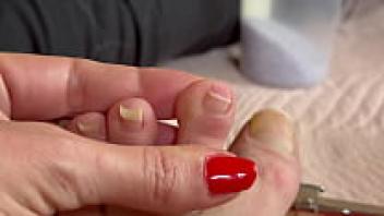 Close-up toes, feet, and nails in an all-natural long-toe fetish video