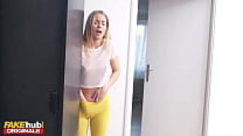 FAKEhub: A gorgeous young woman with an orgasm addiction squirts on a gym buddy's towel and receives a creampie