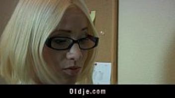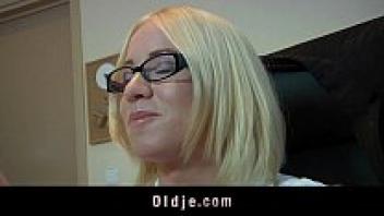 Adorable nurse inspecting an elderly penis in a blowjob dog love/sucking