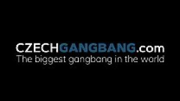 horny grandmother Kathy Jones is quite adept at handling gang bang.