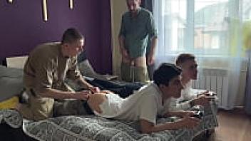 Twink invited his buddies over, and he and his stepfather adored them as they played on the console.