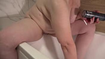 A mature, trimmed pussy is shaved by a chubby milf. In the bath, amateur fetish.