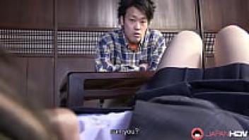 The stepson of a mature Asian brunette mother fills her hairy cunt.