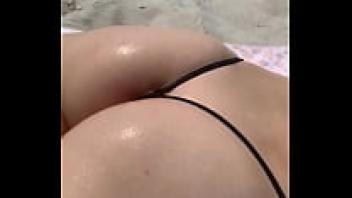 Shaking in the heat, a tiny blonde beach blonde's greasy booty