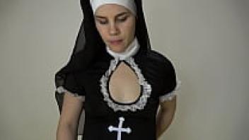After giving a handjob, step-sister nun Anna loves in various positions and receives an oral creampie.