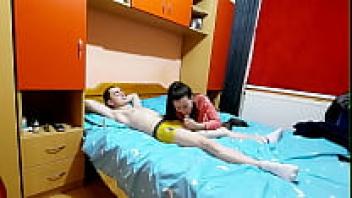 Teenage girlfriend getting hard-loved while sucking her boyfriend's cock