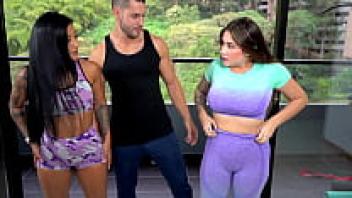 Extreme flexible Fitness Girl with Abs and Skinny Body seduce her Big Dick Coach to love in Gym