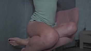 To have an orgasm, a large rubber dildo slowly enters my hot pussy.