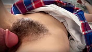 Stepson's love hairy unclean cunt, cum within the pussy, and close-up