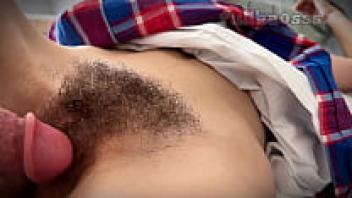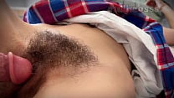 Huge cumshot on hairy pussy and hard love for my stepmother