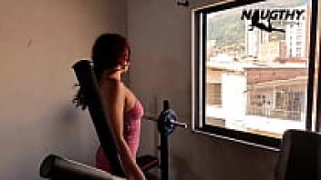 In the gym, a gorgeous girl masturbates