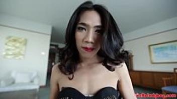 HELLOLADYBOY Asian Ladyboy Swallows Big Dick in an Effort to Please