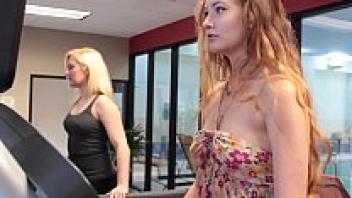 At the gym, Samantha Hayes and Fifi Foxx bounce their breasts.