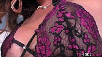 Ladyboy in lingerie spermed
