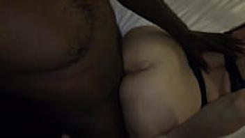 Following a blowjob, an amateur huge ass wife rides a dick.
