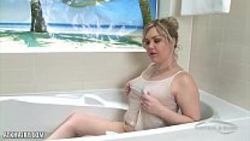 Verronica Kirei, a slim blonde, caresses her hairy pussy.