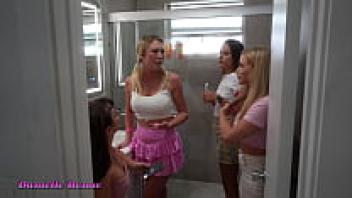 Peeping Tom is reverse gangbanged by four college sorority girls.