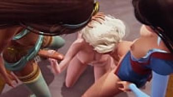 Disney Futa Threesome: Mulan x Elsa x Jasmine - 3D Porn