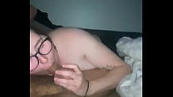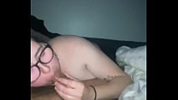 Gagging on my husband's cock while sucking the CUM out of him and letting the cum drip down my face.