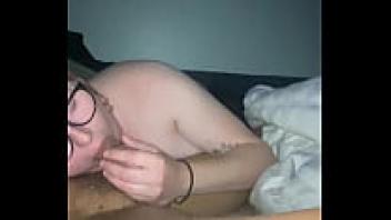 Getting a facial by sucking cock