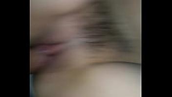 Close-up of an Asian milf's hairy, filthy pussy with cum within