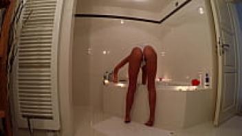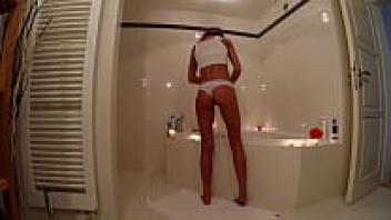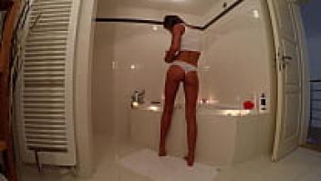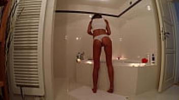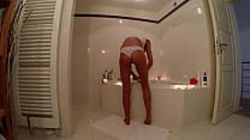 My Korean teen hot girlfriend is in the restroom for me as I turn on my cameras.