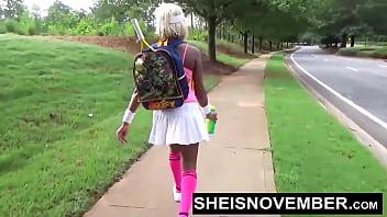 My Brown Booty Has A Huge Wedgie Before Giving A Public POV Kneeling Blowjob To A Stranger I Meet, Busty Blonde Ebony Babe Sheisnovember Sucking Big Cock After Walking Upskirt And Flashing Her Natural Tits And Erect Nipples by Msnovember